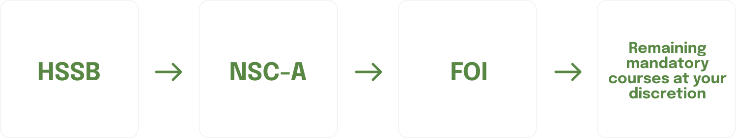 Candidates are required to fulfill course-by-course requirements. Upon successful completion of all 6 mandatory, 2 electives you are eligible for sitting in the CTSC Exam.