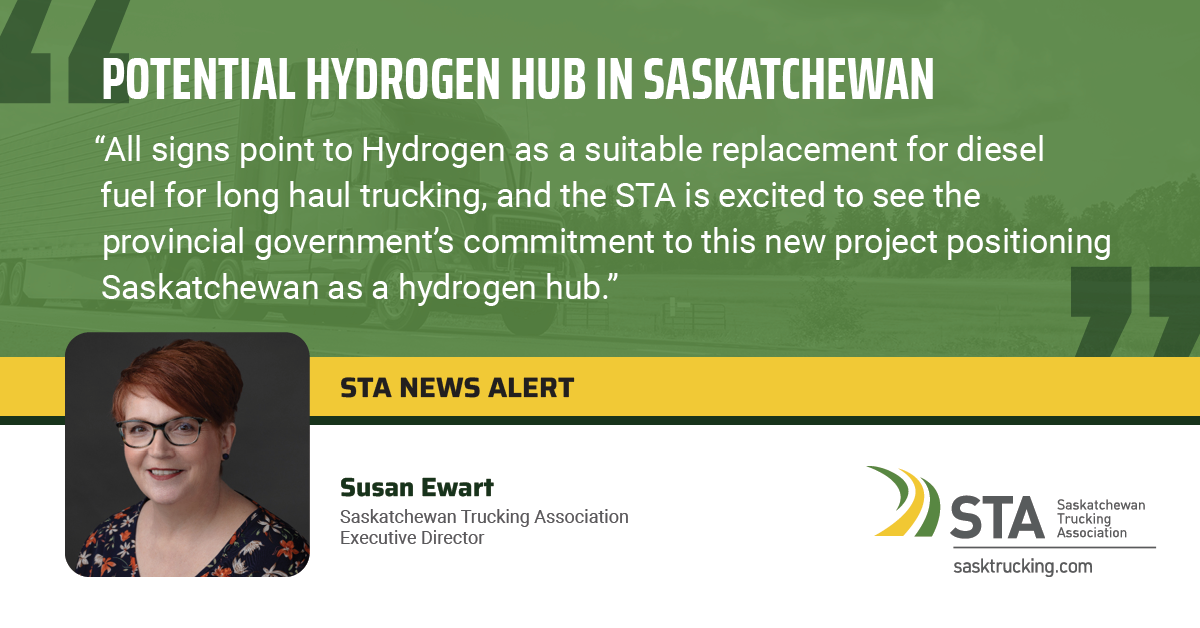 Saskatchewan Trucking Association's Executive Director, Susan Ewart is encouraged by the announcement, stating, "all signs point to Hydrogen as a suitable replacement for diesel fuel for long-haul trucking, and the STA is excited to see the provincial government's commitment to this new project positioning Saskatchewan as a Hydrogen hub."